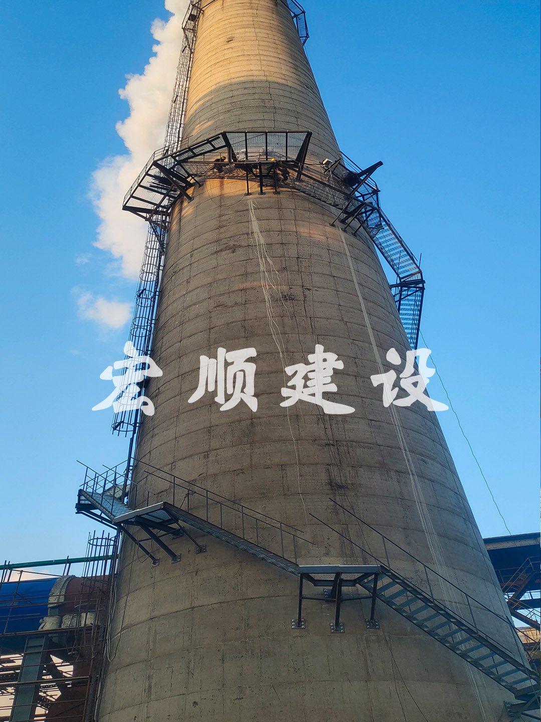 熱烈祝賀本溪水泥煙囪爬梯平臺更換安裝順利開工