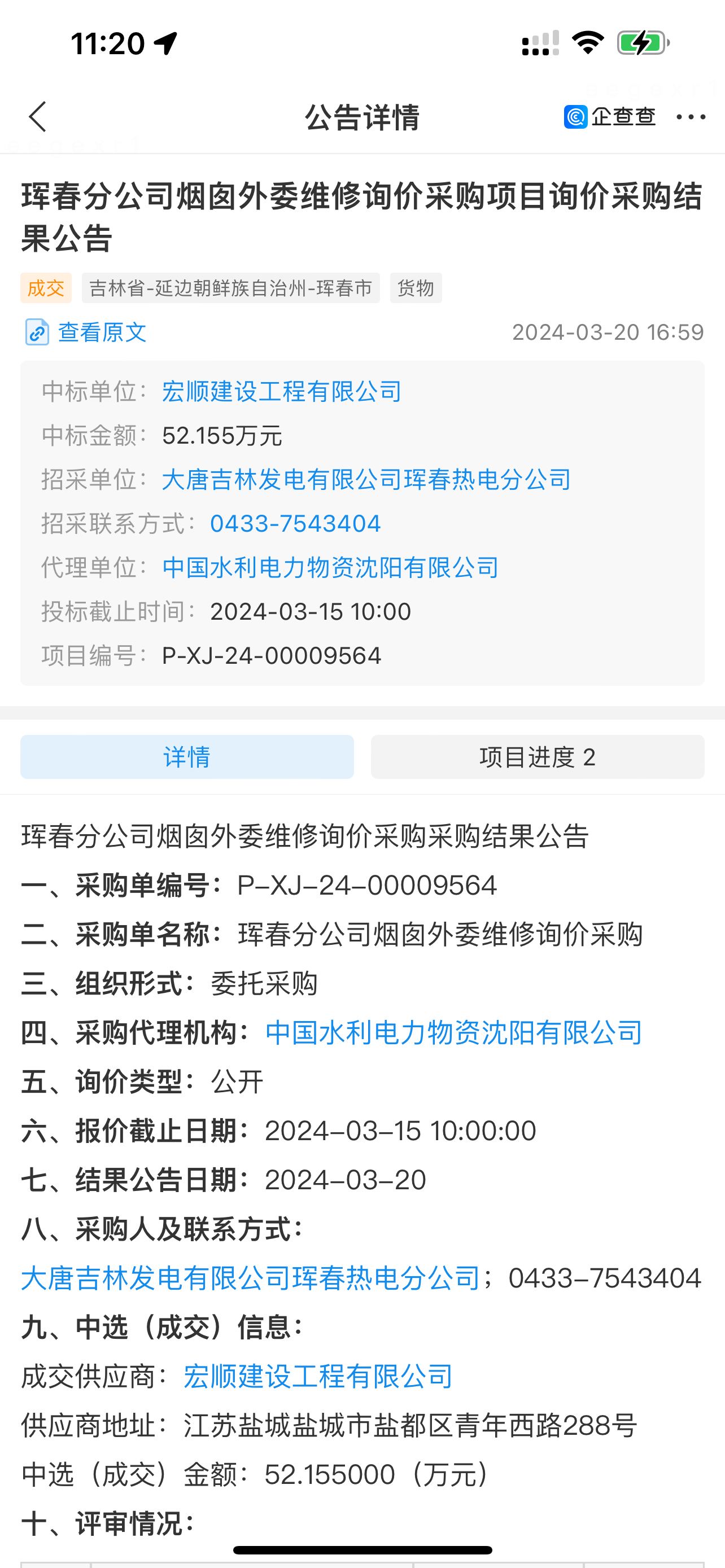 熱烈祝賀我公司中標大唐吉林琿春熱電的煙囪外委維修工程