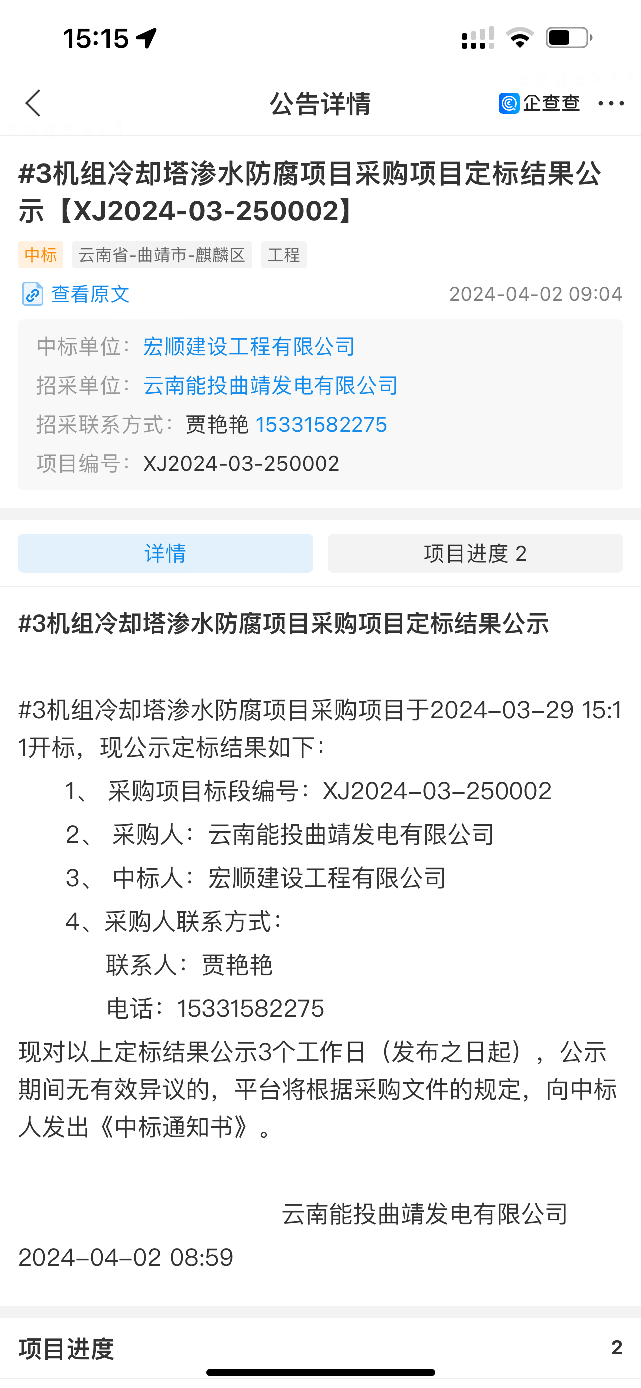 熱烈祝賀我公司中標云南能投曲靖發電電廠機組冷卻塔滲水防腐項目